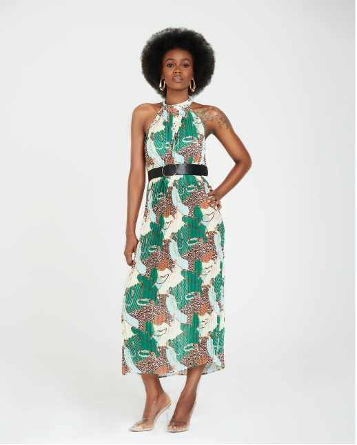 This printed beauty has a button closure at the back neck & a very elegant slit hem detail on the left. Our exec’s will flow effortlessly in this lightweight, semi-sheer dress.